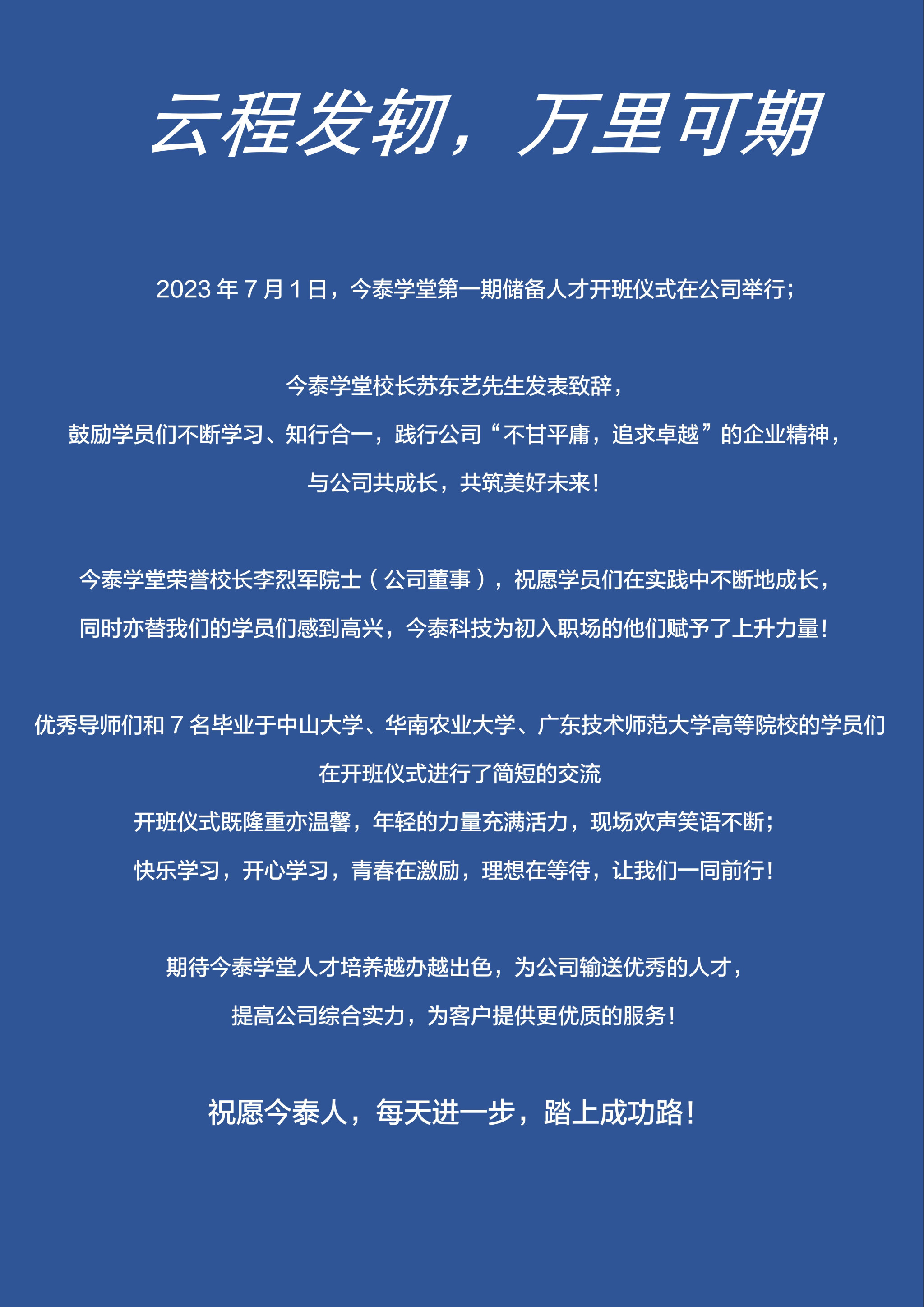 熱烈慶祝│今泰學(xué)堂第一期儲備人才開(kāi)班儀式成(chéng)功舉行!